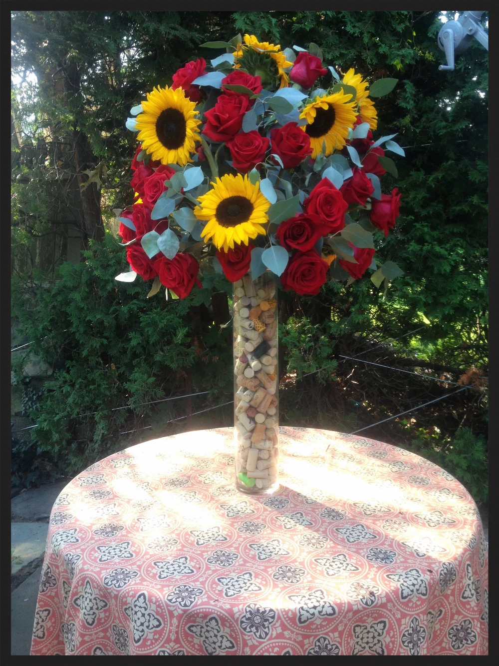 Sunflowers Roses And Wine Corks Evelisa Floral Design Westchester Wedding Florist Westchester Flowers Nyc Wedding Flowers